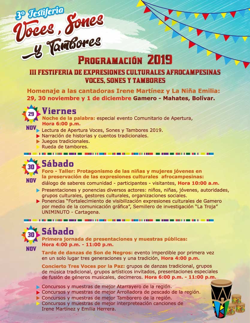 The village of Gamero is a breeding ground for folk groups from the Caribbean region of Colombia (singers, musicians, dancers). Through participatory action and participatory design processes, a group of students collaborated with community leaders in Gamero to co-create visual communication materials that strengthened the dissemination, preservation, and promotion of their cultural heritage, tailored to the community's unique circumstances and context.